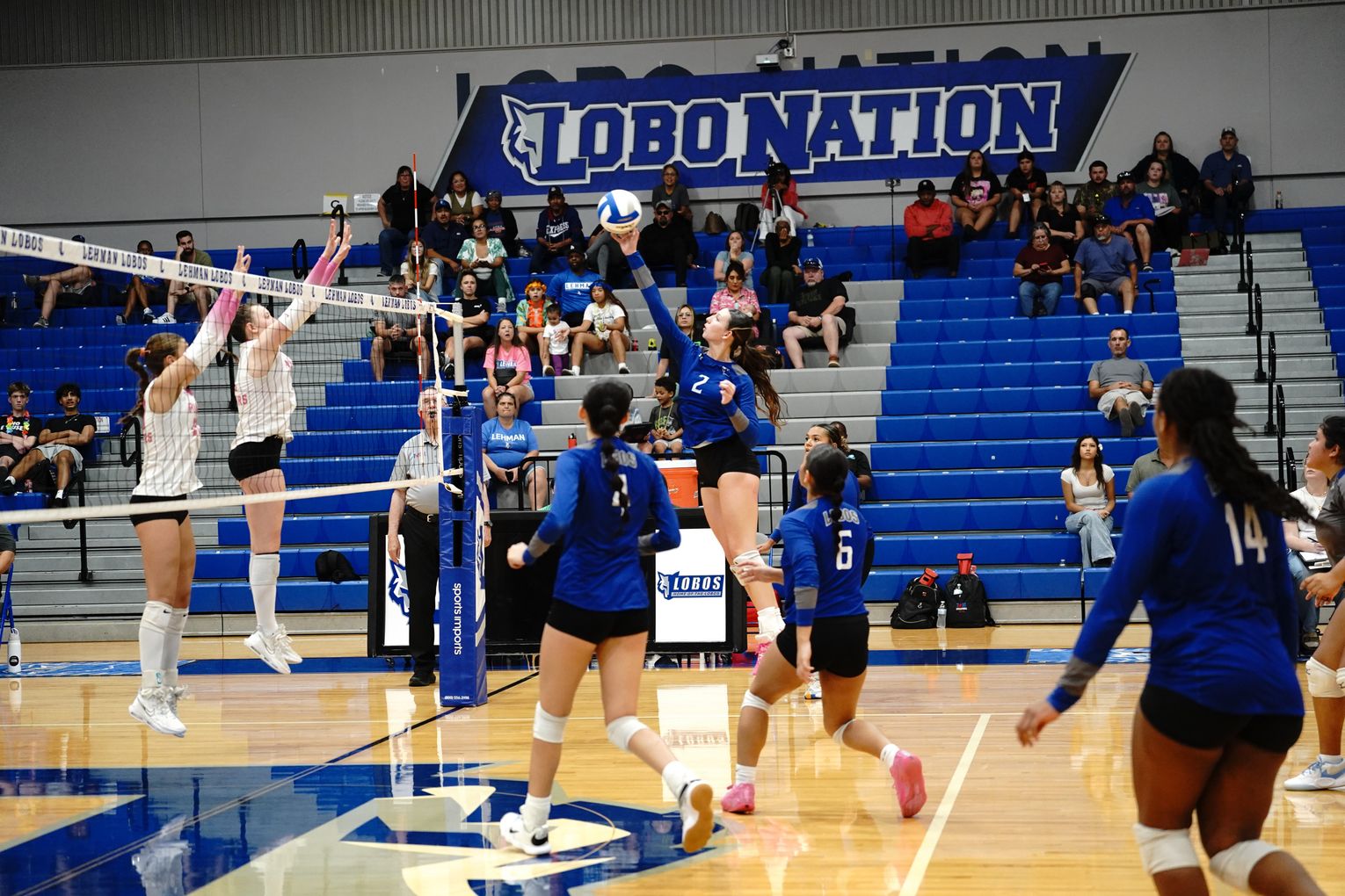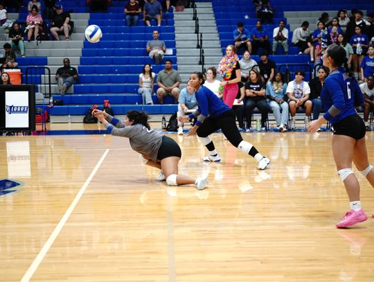 Lehman High School Lobo Camy Caddell (No. 2) jumps to tip the ball over the net in the team’s home game against the Rouse High School Raiders. The Lady Lobos lost 3-0 (9-25, 4-25, 10-25) in the district matchup. The team will travel to Leander High School at press time Tuesday, Sept. 30. On Friday, Oct. 3, they will visit crosstown rival Hays High School for the last time this season.