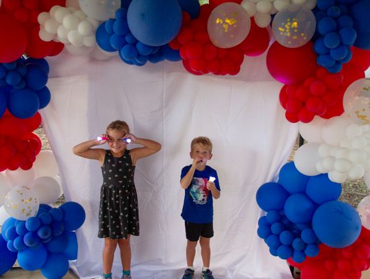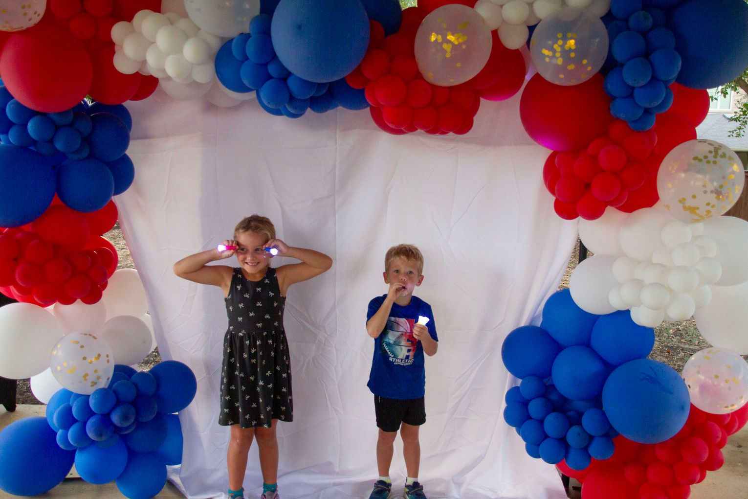 Brother-and-sister-duo Stella, left, and Beau, pose for a quick photo with their new flashlights and whistle.