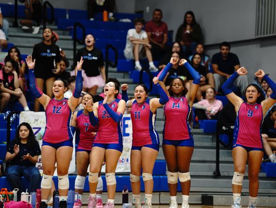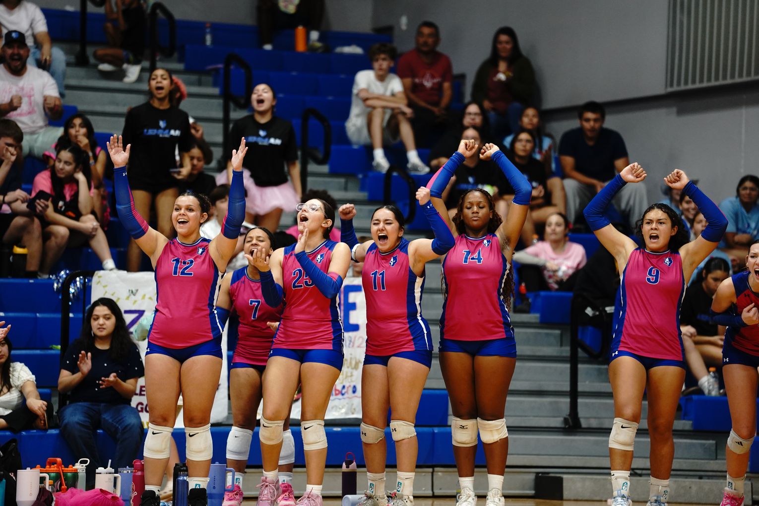 The Lady Lobos cheer on their teammates following some good plays. The team will face off with Liberty Hill High School and Leander High School, Oct. 21 and Oct. 24, respectively, at home to finish out the regular season.