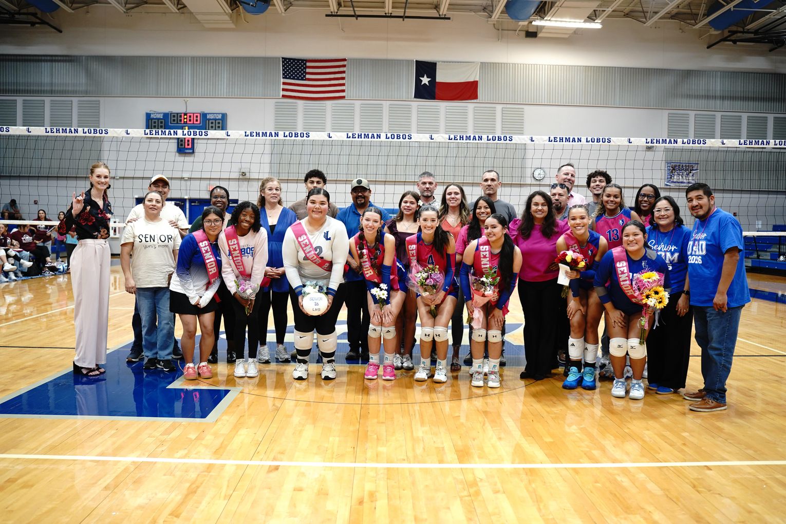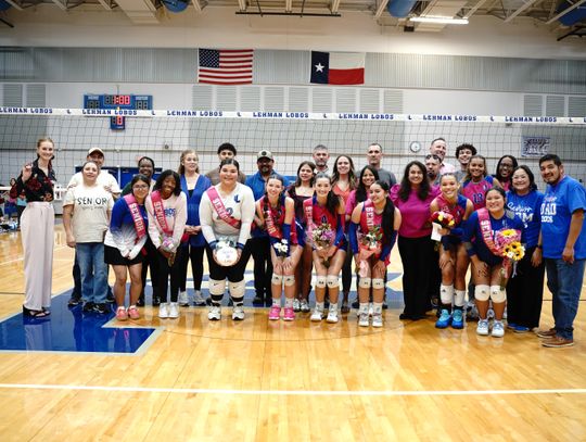 The Lehman High School Lady Lobos volleyball team hosted the Lockhart High School Lions Friday, Oct. 10, which was also dubbed as Senior Night. Prior to the game, the senior and their families were recognized. The Lady Lobos ultimately lost the game 3-0 (17-25, 18-25, 17-25).