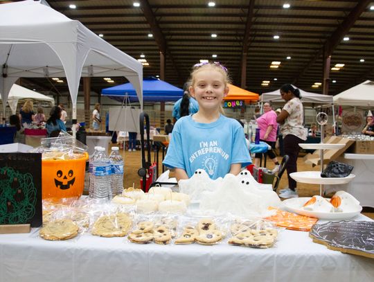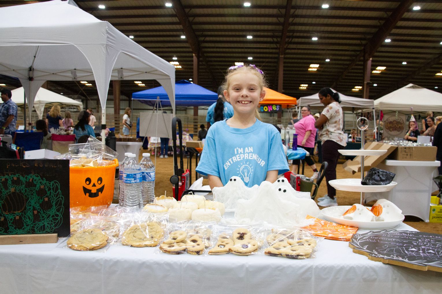 Seven-year-old Anne K., of Anne’s Goods and Crafts, shows off her sweet treats and fall creations at the Children’s Entrepreneur Market.