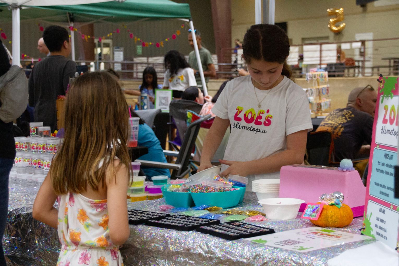 Zoe, of Soe’s Slimetopia, mixes up a custom batch of slime for a young customer.