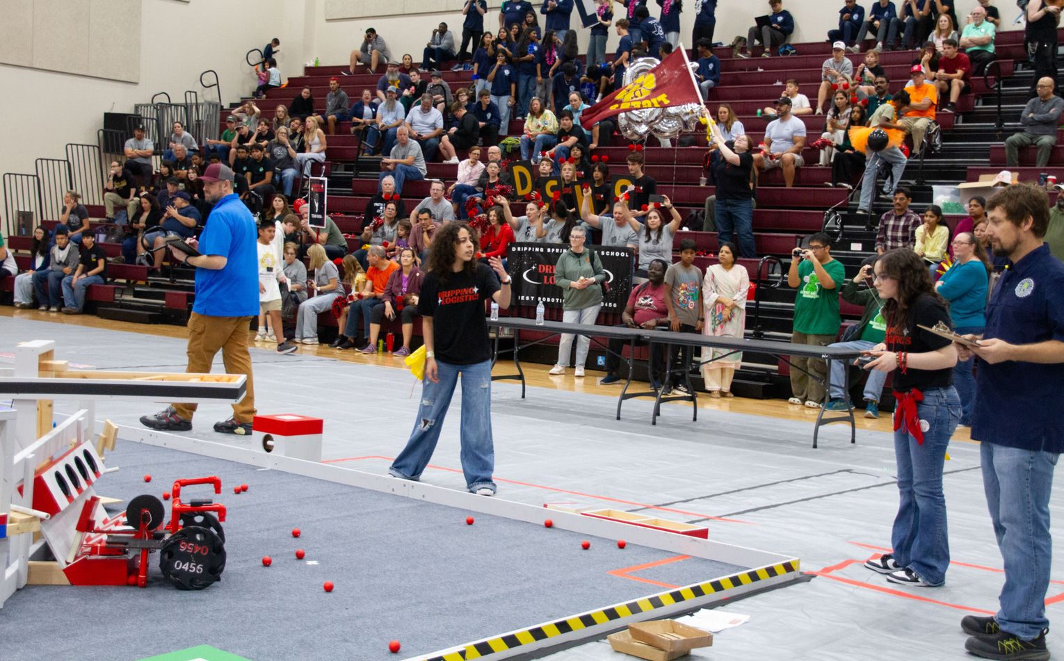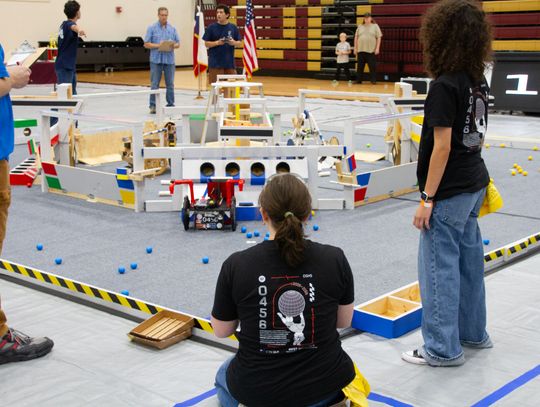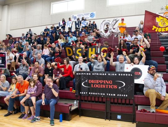 The Dripping Springs High School Boosting Engineering Science & Technology (BEST) Robotics program welcomed schools from around the area for the regional robotics competition Saturday, Nov. 22. Teams competed head-to-head on the game field to earn entry to the state competition. The DSHS team, Dripping Logistics, placed third in the head-to-head matches, while also earning the Judge's Choice and BEST awards, and will compete in Dallas for the state championship, to be held Dec. 11-13.