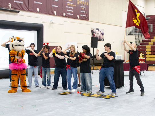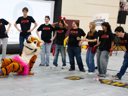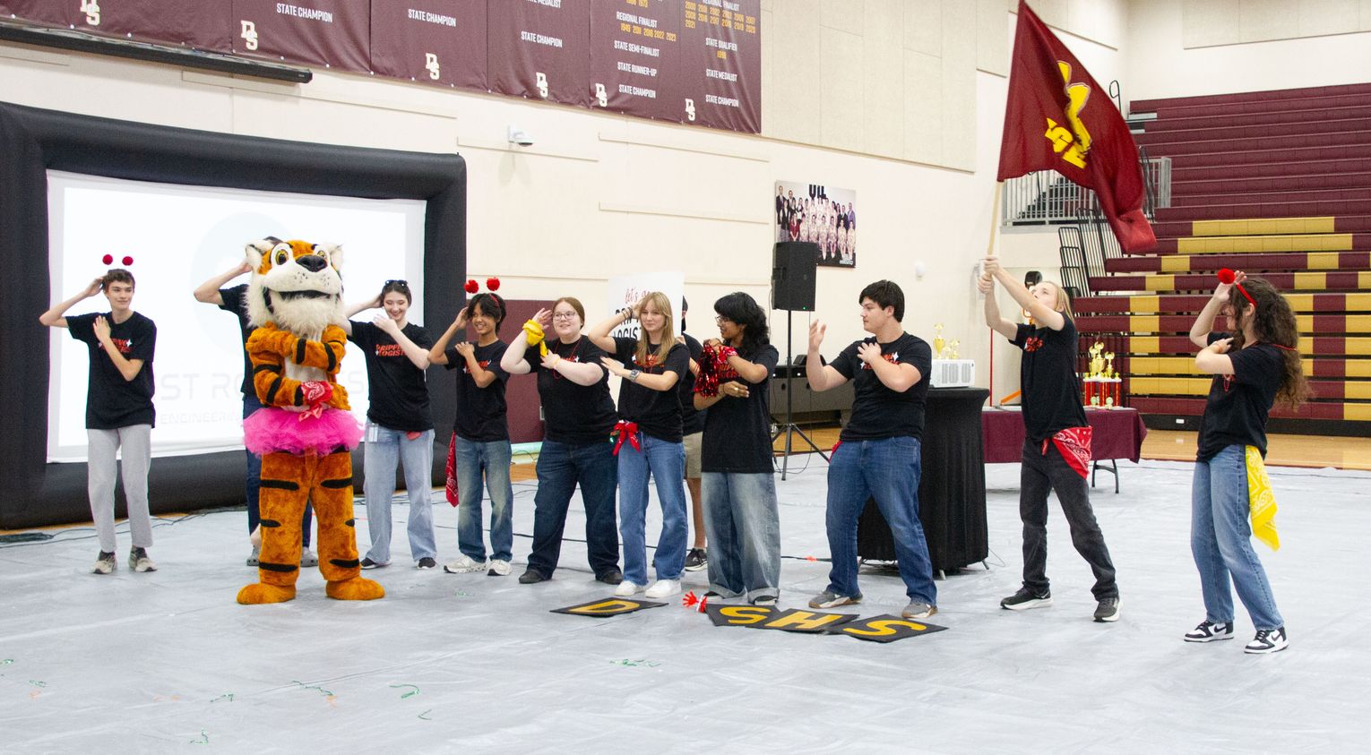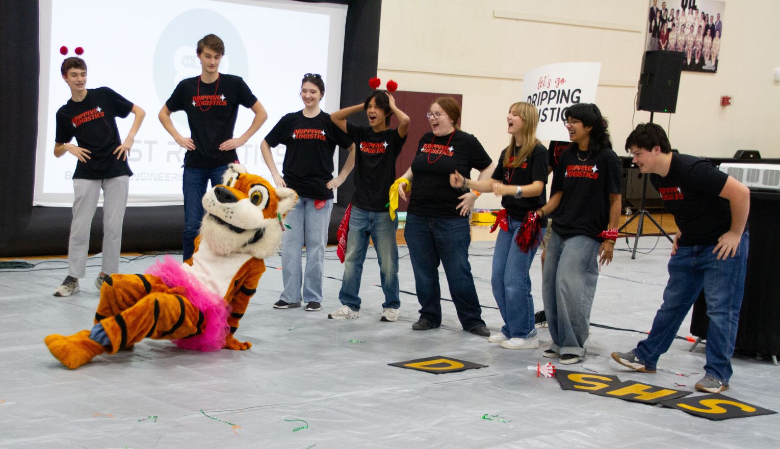 In between rounds, teams had an opportunity to perform a spirit break for the crowd. Dripping Logistics brought in the school’s mascot and performed the Macarena during its break, as pictured.