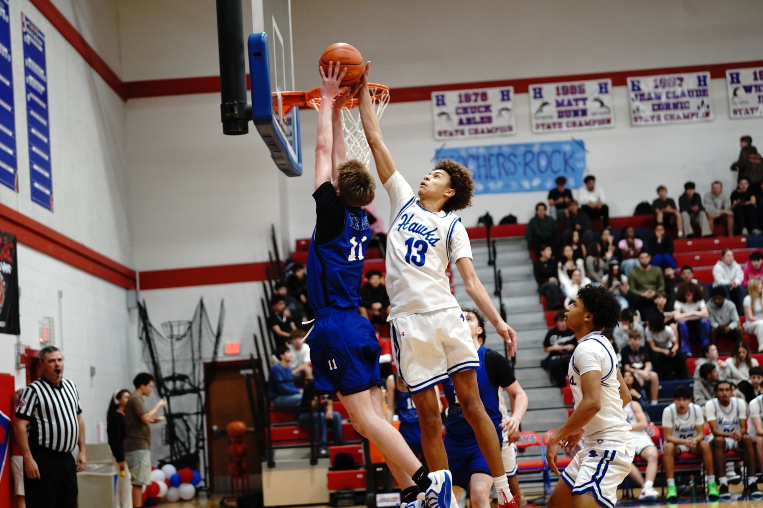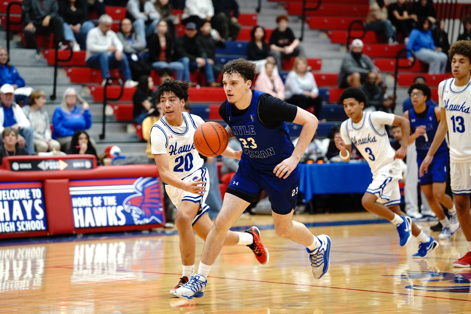 The Hays High School Hawks (14-10 overall, 2-3 district) and the Lehman High School Lobos (3-17 overall, 0-5 district) boys basketball teams took to the court Friday, Jan. 16, for a district matchup that resulted in a 61-40 win for the Hawks.