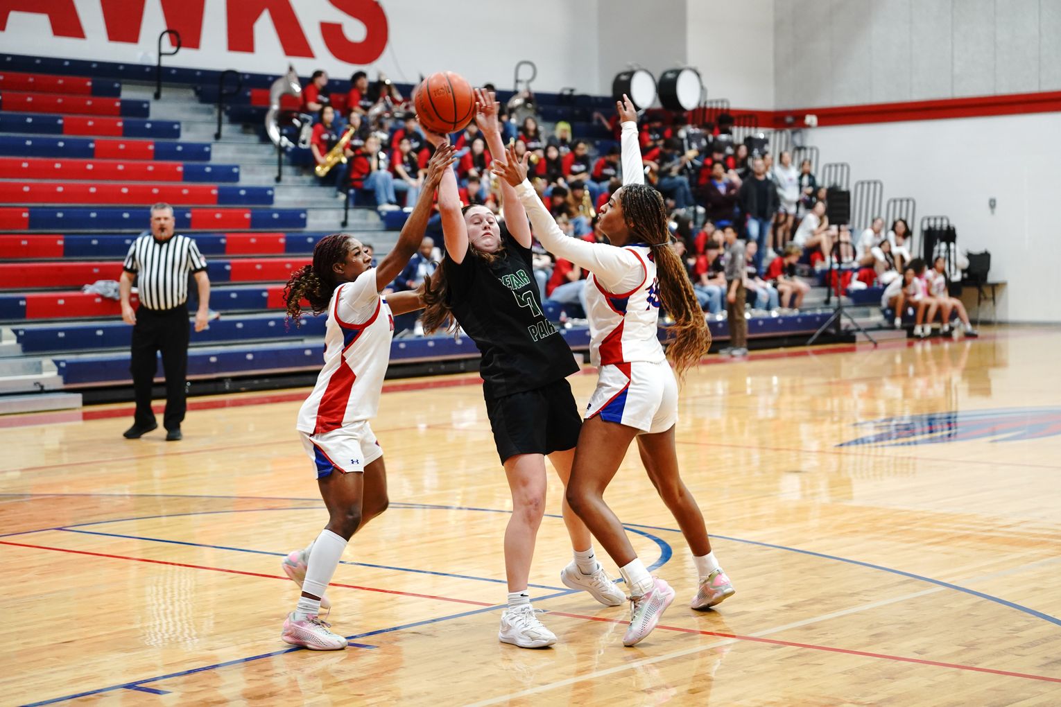 On Tuesday, Jan. 20, the Hays High School Hawks girls basketball team hosted the Cedar Park High School Timberwolves and couldn’t keep up, losing 40-23.