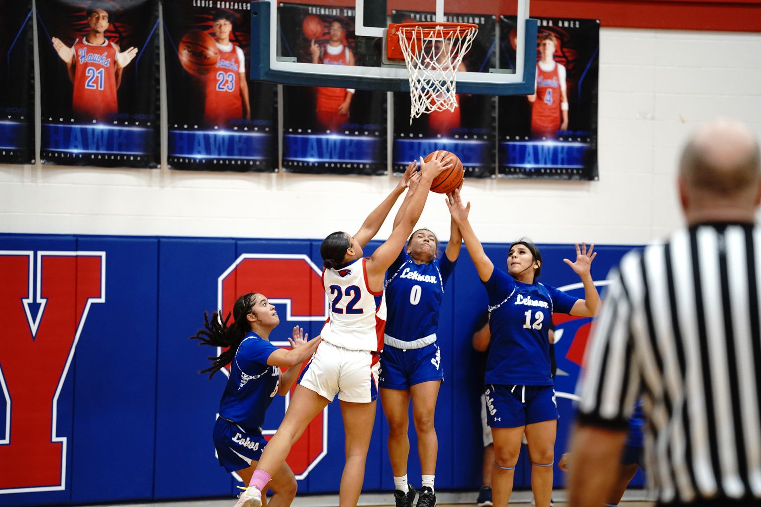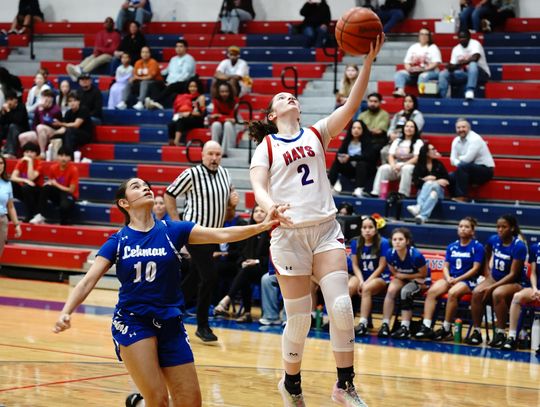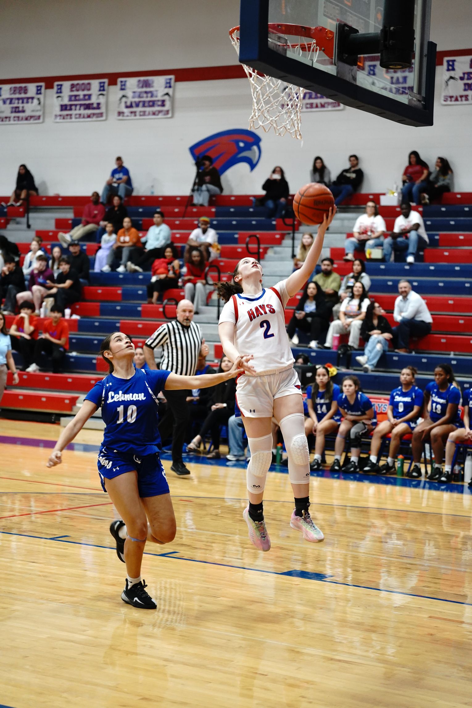 The Hays High School Hawks and the Lehman High School Lobos girls basketball teams faced off to end the regular season Tuesday, Feb. 10. Despite their best efforts, the Lady Lobos could not overcome the Hawks, losing 75-55.