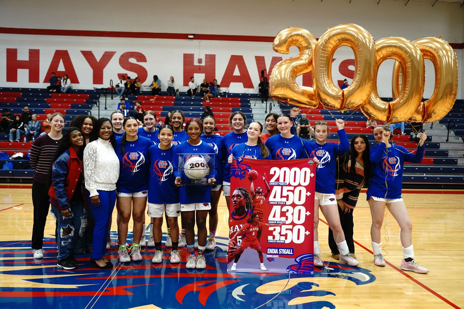 In addition to the win, which sent the Hawks to playoffs, senior Endia Stigall (No. 5) scored her 2,000th career point. She has more than 450 career steals, 430 career assists and 350 career boards. Hays ended the regular season with an overall record of 21-13 and a district record of 8-6. The team will face San Antonio’s Wagner High School for the Bi-District round of playoffs at press time Tuesday, Feb. 17.