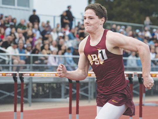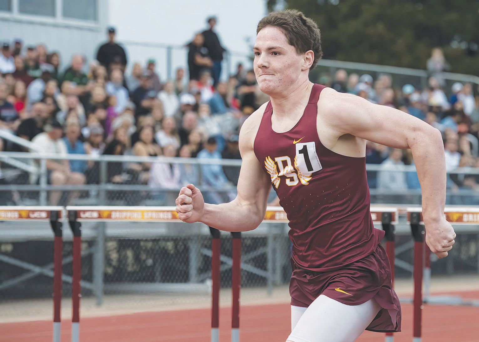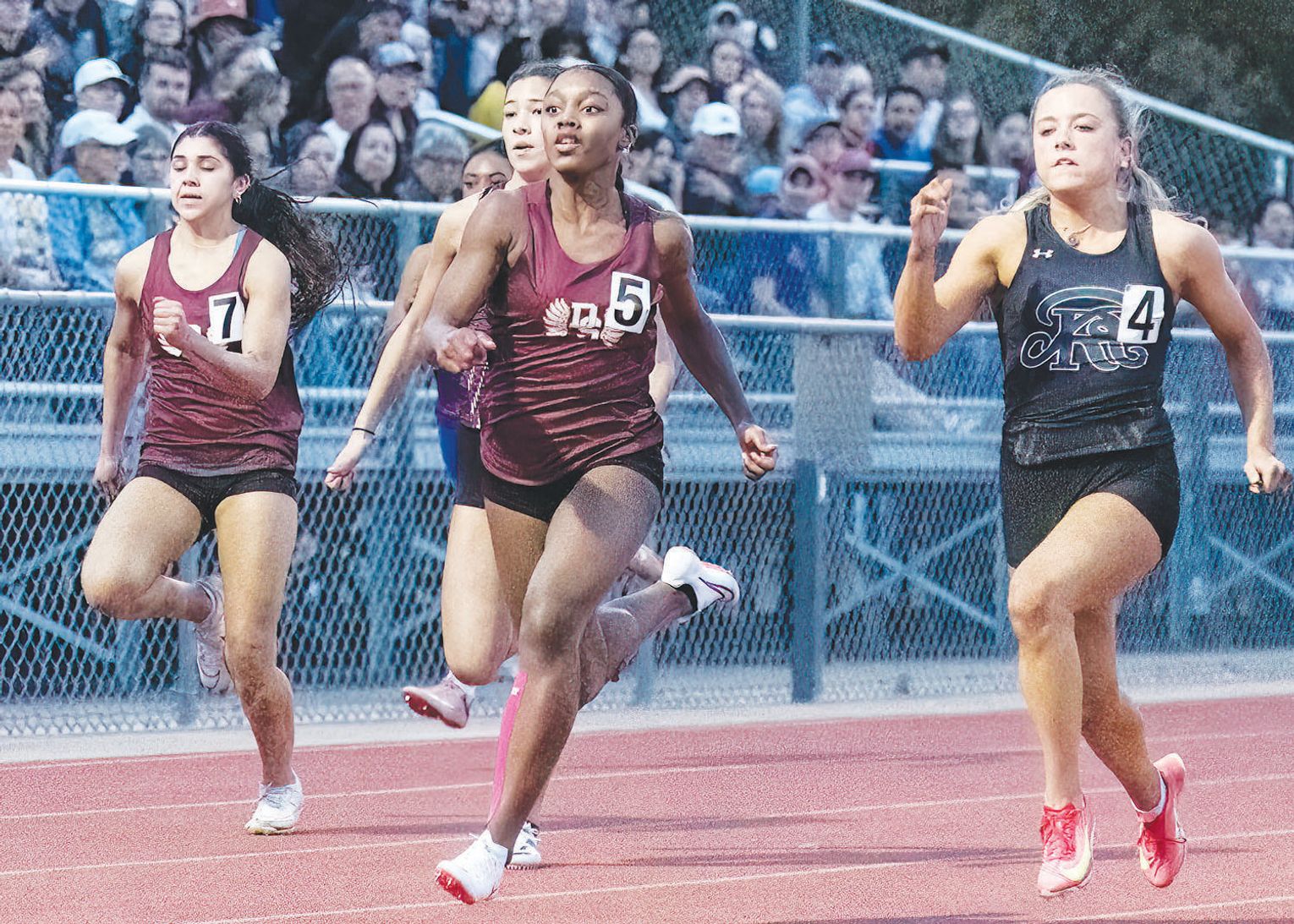 Talia Alvarado (lane 7) and Amara Mouton (lane 5) race in the girls varsity 100-meter dash in the 31st Annual Tiger Relays, hosted by Dripping Springs High School Friday, Feb. 13. Mouton finished fifth (13.08) and Alvarado placed eighth (18.53). The Lady Tigers placed fifth with 52 points, while the Tigers boys varsity finished sixth with 46. Dripping Springs competes next at the Hawk Relays Feb. 19 at Canyon Lake High School.