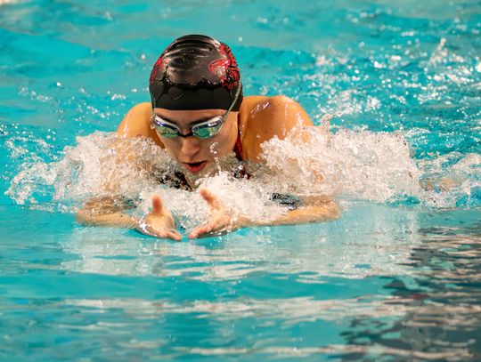 Hays High School Hawks varsity swimmer, Daniela Castro, competes in the 100-yard breaststroke during the 2026 University Interscholastic League (UIL) Swim and Dive State Meet, held at the Lee & Joe Jamail Texas Swimming Center at The University of Texas at Austin Friday, Feb. 20. Castro, a senior member of the Hays Aquatic swim team, was the sole individual swimmer who qualified for UIL State. She competed in three events — the 100-yard breast stroke, the 100-yard backstroke and the 50-yard freestyle — advancing to finals for the latter. As an individual swimmer, she placed 10th overall for the 50-yard freestyle Saturday, Feb. 21.