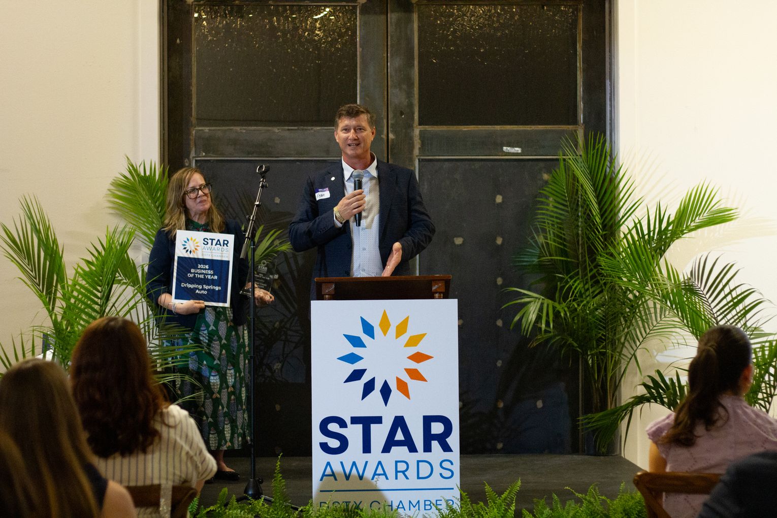 The Dripping Springs Chamber of Commerce hosted its annual Star Awards event at Dripping Springs Distilling Thursday, March 5. Various awards were presented to Dripping Springs businesses and individuals, including Business of the Year, presented to Dripping Springs Automotive.