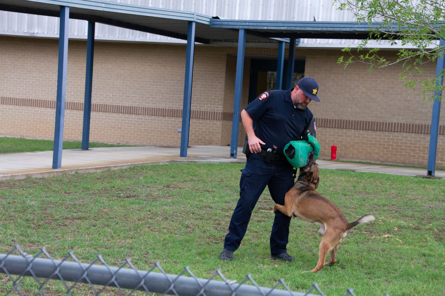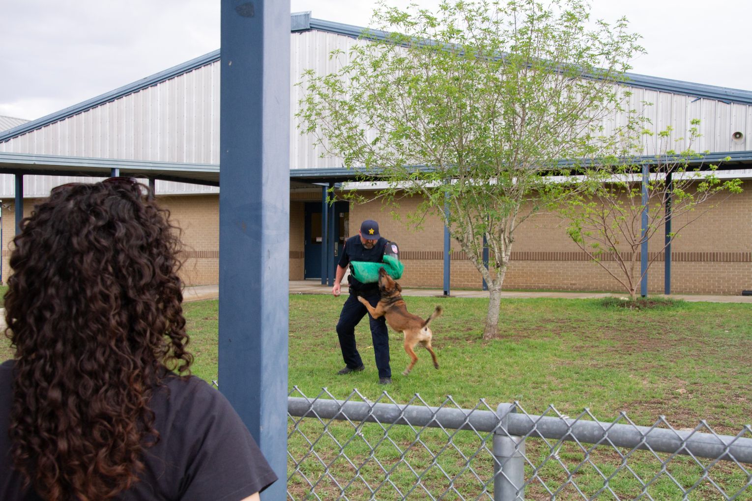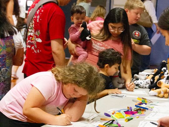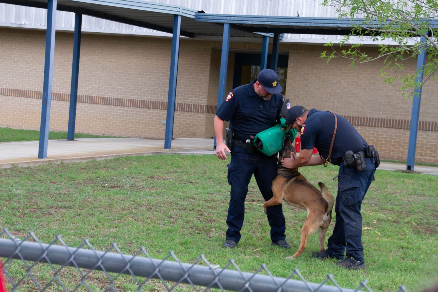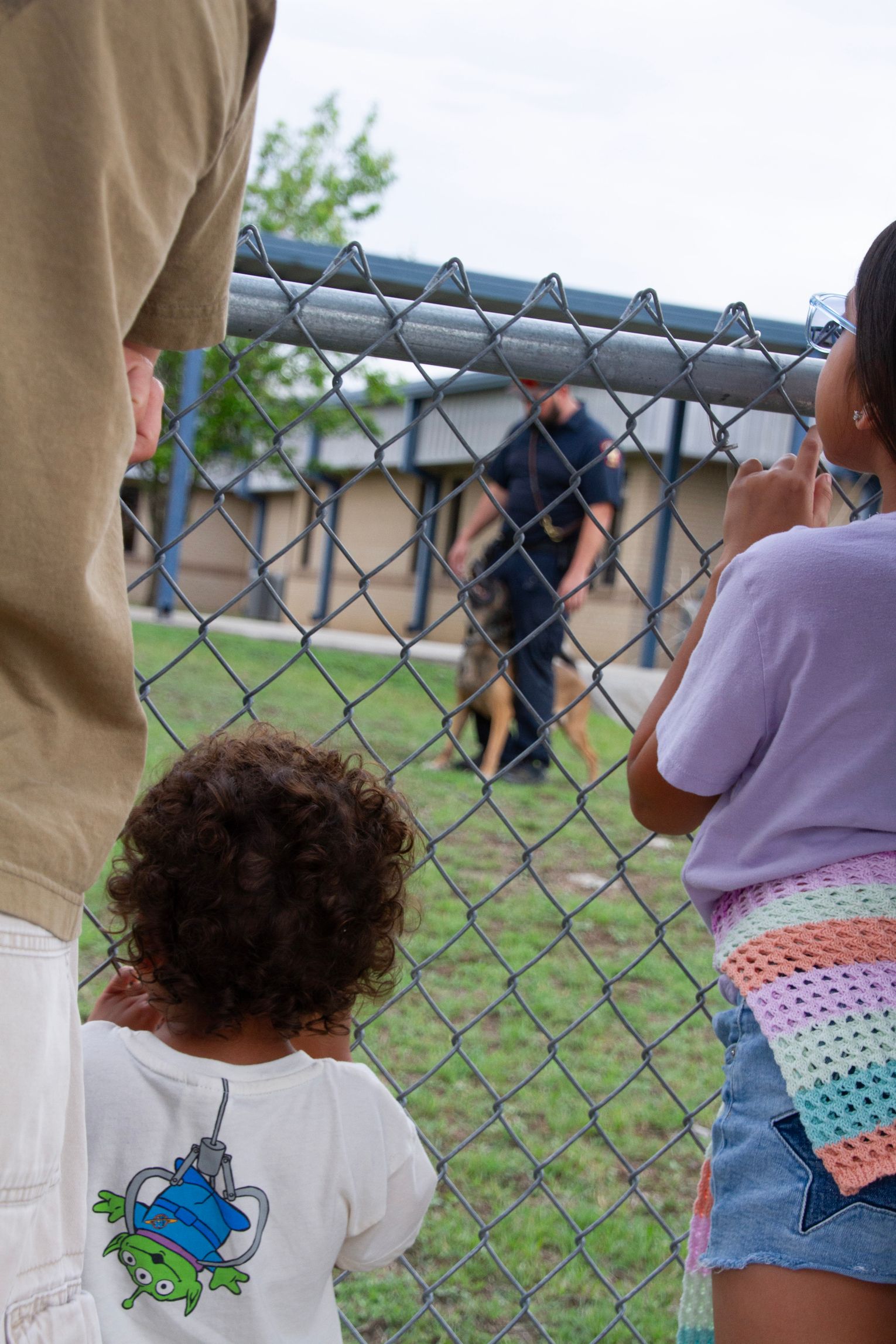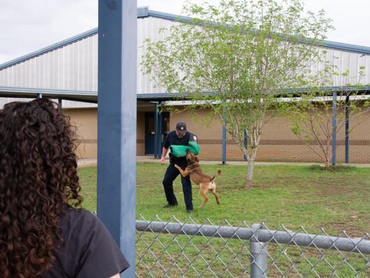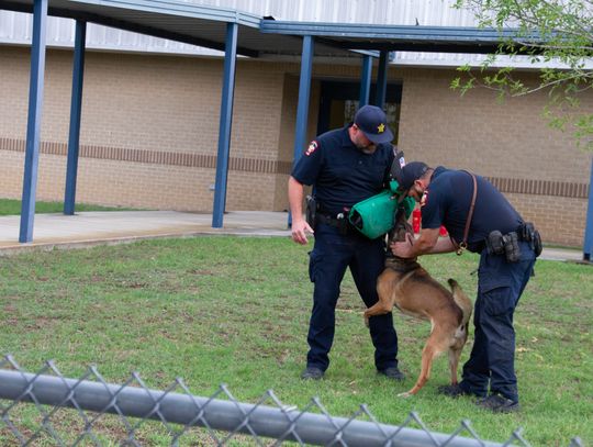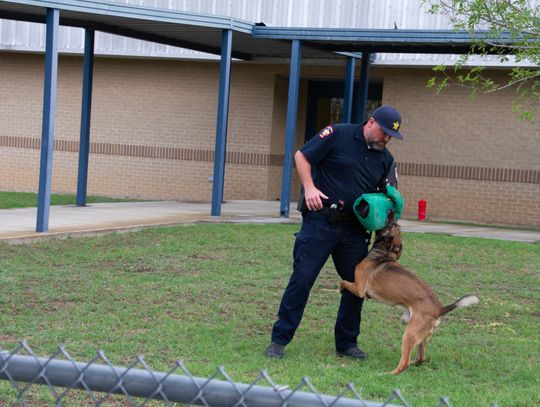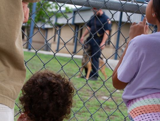 Following the indoor presentation, families and staff moved outside for a demonstration by the Hays County Sheriff’s Office K-9 Unit.