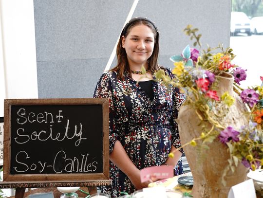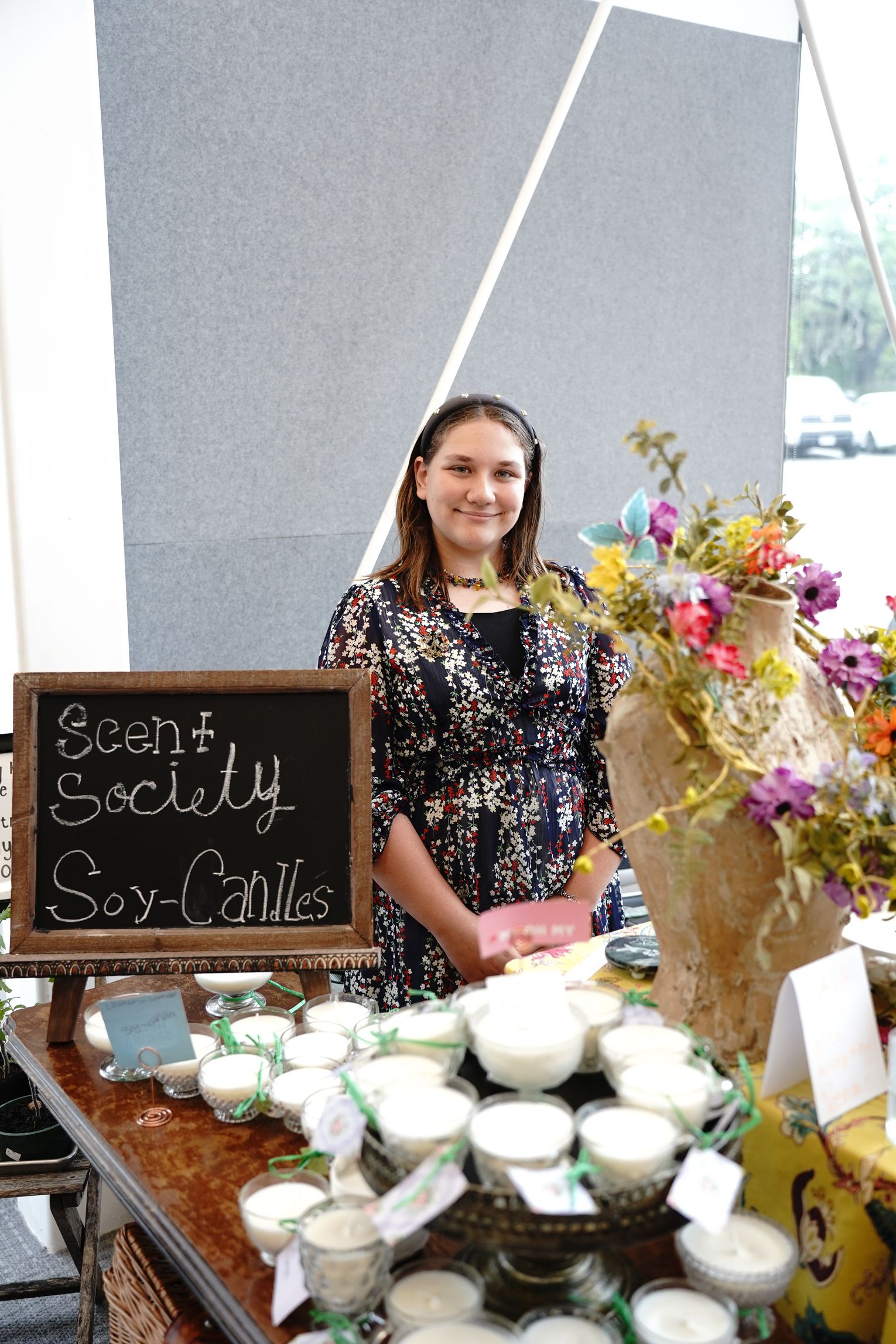 Eleven-year-old Emma Easter sold homemade soy candles from her business, Scent Society.